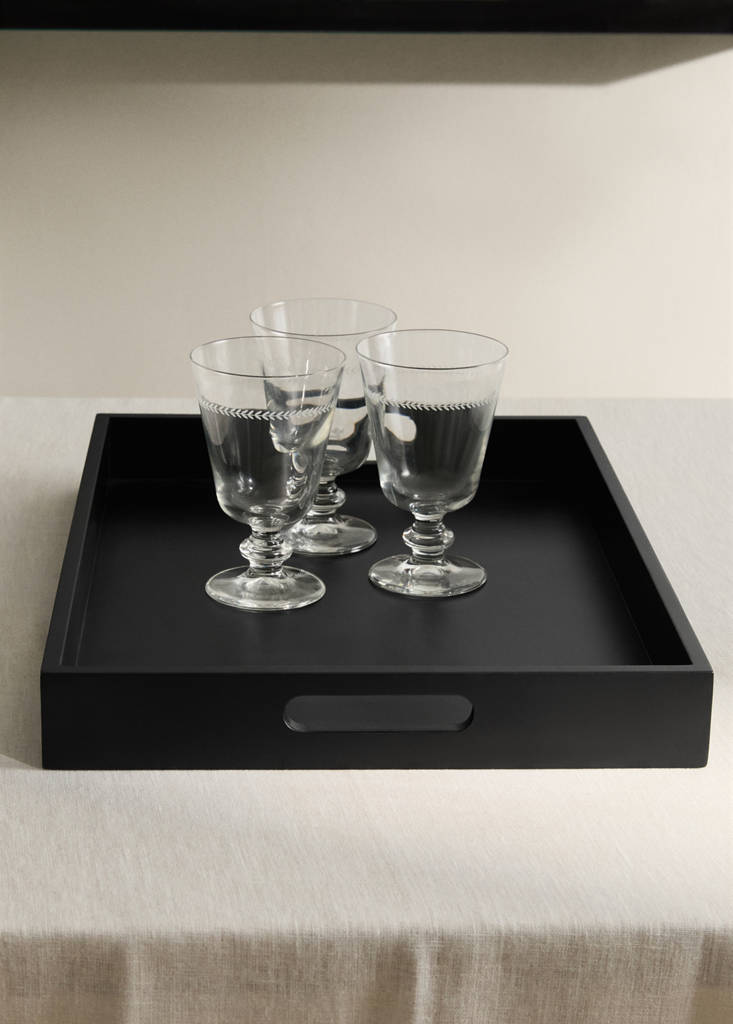Decorative tray. Size: 32x44x5 cm. 100% natural wood. Rectangular shape with a simple and modern design. Two integrated handles. This type of tray can be used for decorative purposes, as a base to place candles, plants or any other decorative object, or it can be practical for organising and presenting items in a space such as a coffee table