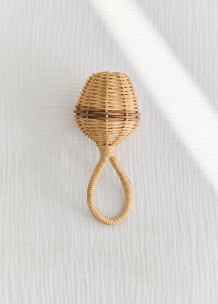 100% rattan. Size: 7x18cm. Natural rattan baby rattle, lightweight and easy for small hands to grasp, with a gentle sound that stimulates sensory play for the baby