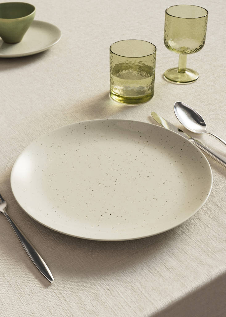 Dinner plate. Diameter: 27cm. 100% stoneware. Micro dot texture. Made in Portugal. Suitable for food. Microwave safe. Dishwasher safe. Coordinates with more products from the collection