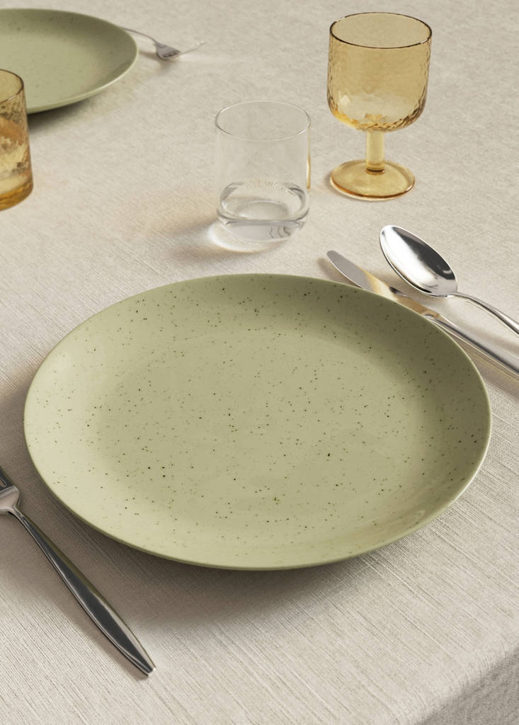 Dinner plate. Diameter: 27cm. 100% stoneware. Micro dot texture. Made in Portugal. Suitable for food. Microwave safe. Dishwasher safe. Coordinates with more products from the collection
