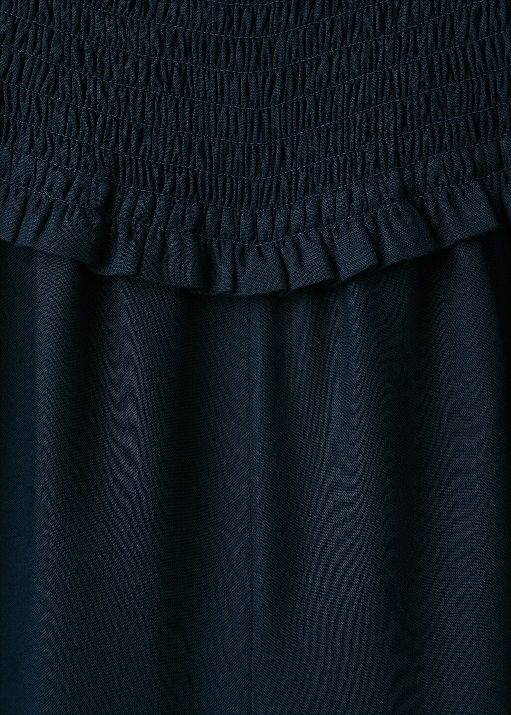 Fluid fabric. Cute design. Straight design. Long design. Bandeau neckline. Gathered detail on the chest. Elastic hem. Bow detail at the hem.