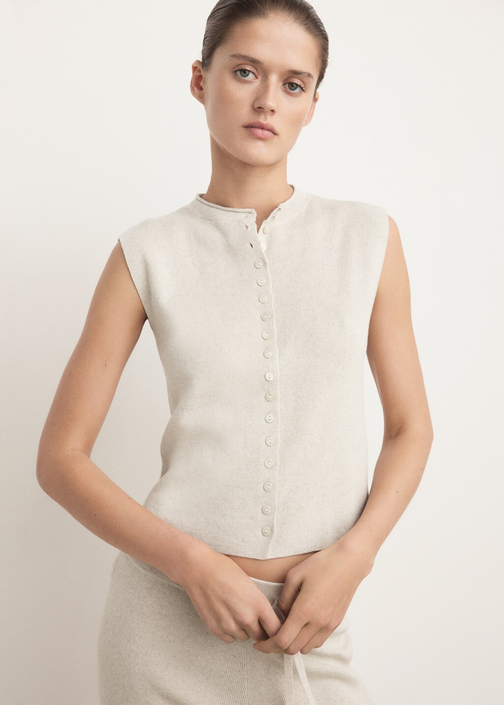 Cotton linen knitted gilet with buttons