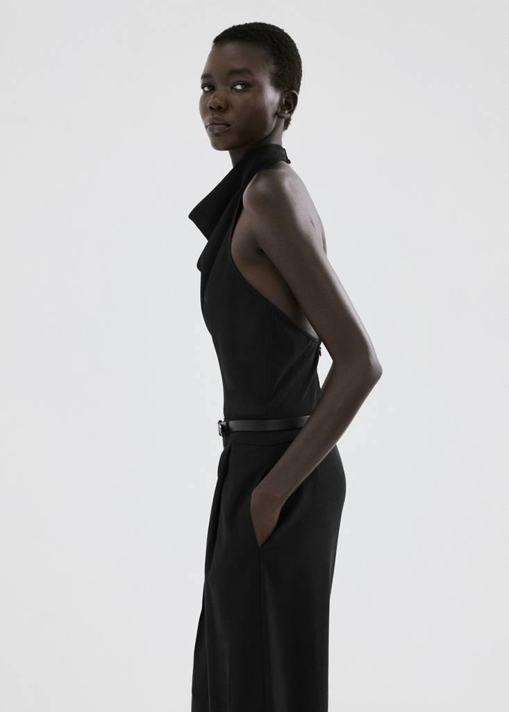 Recht ontwerp. Lang ontwerp. Gecombineerd ontwerp. Halternek. Mouwloos. Brede bandjes. Riemlussen. Twee zijzakken. Knoopsluiting bij de hals. Sluiting aan de achterkant. Exclusief Online