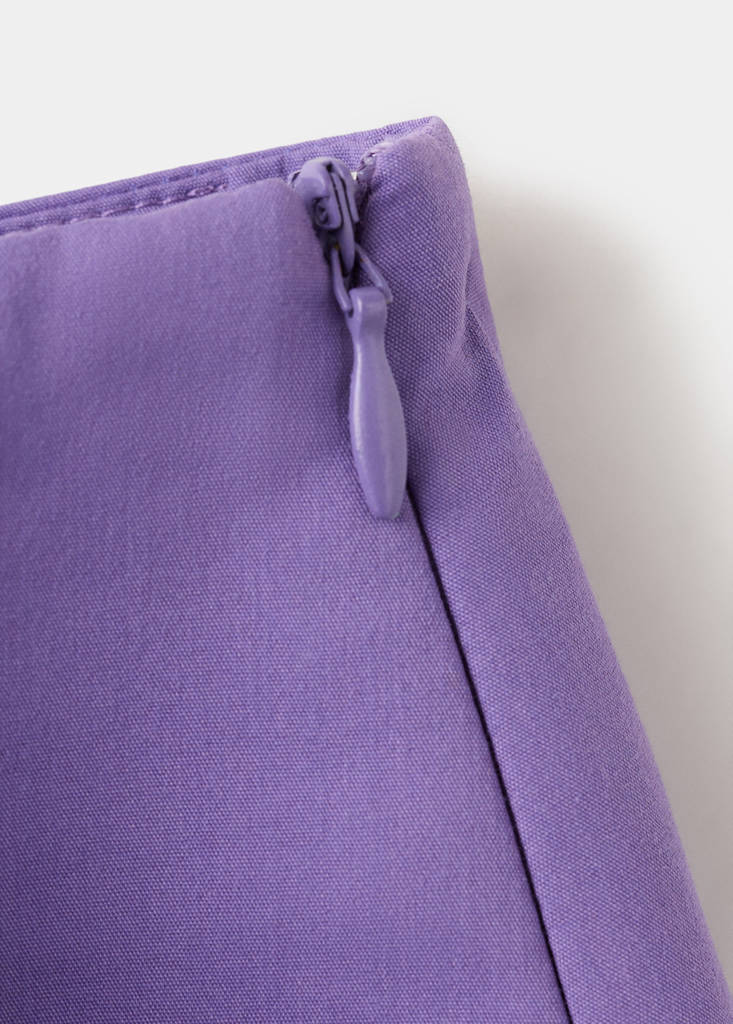Katoenmix stof. Rekbare stof. Kort ontwerp. Rechte snit. Low-rise. Blinde ritssluiting aan de zijkant