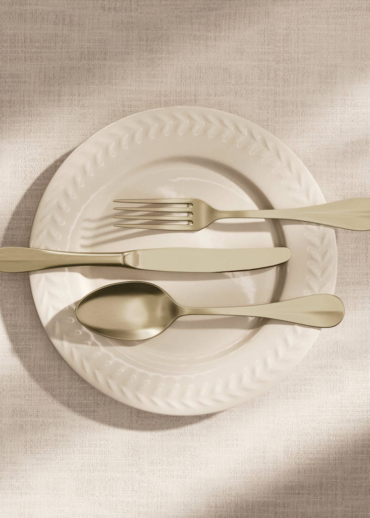 Bestekset. Inclusief mes, vork en lepel. Mes: 23 cm. Vork: 21 cm. Lepel: 21 cm. Kan in de vaatwasser worden gewassen. 3-pack. Decoreer je tafel met een speciaal tintje. Elegant en minimalistisch ontwerp, ideaal voor elke tafel. Combineer met meer artikelen uit de collectie