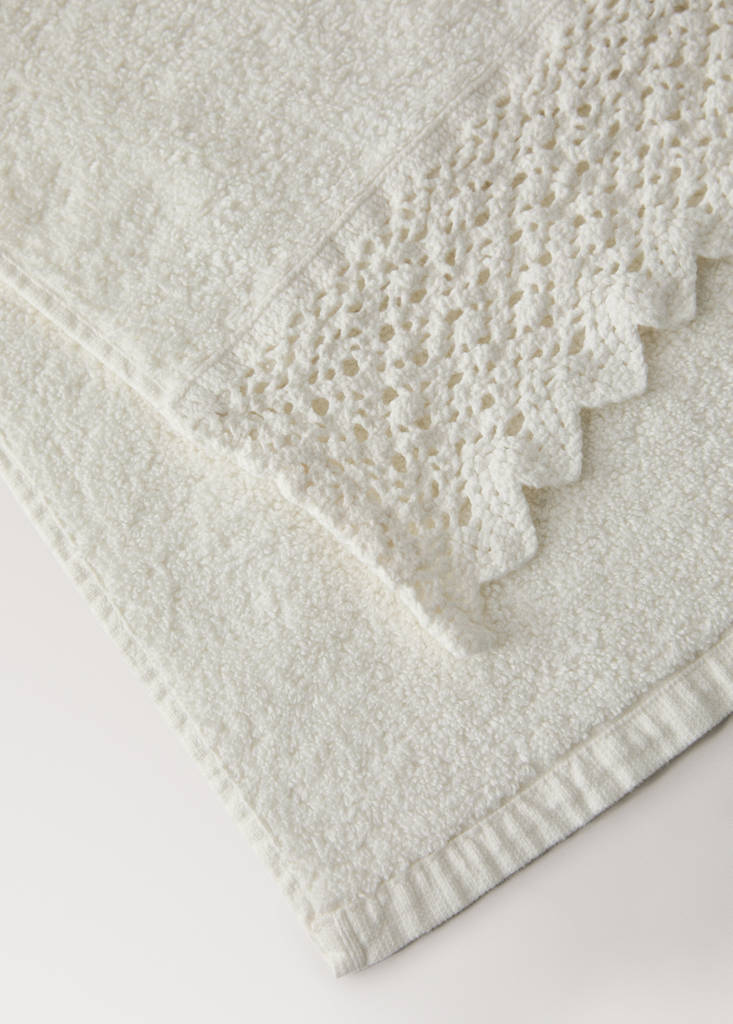 100% Katoen. Afmeting: 30x50cm. Gastendoekje van 100% katoen, wat zorgt voor een hoge kwaliteit en daarnaast is het zacht en fluffy. De stof absorbeert snel vocht en de rand met een opengewerkt ontwerp geeft het een romantische en verfijnde uitstraling. Verkrijgbaar in meer maten