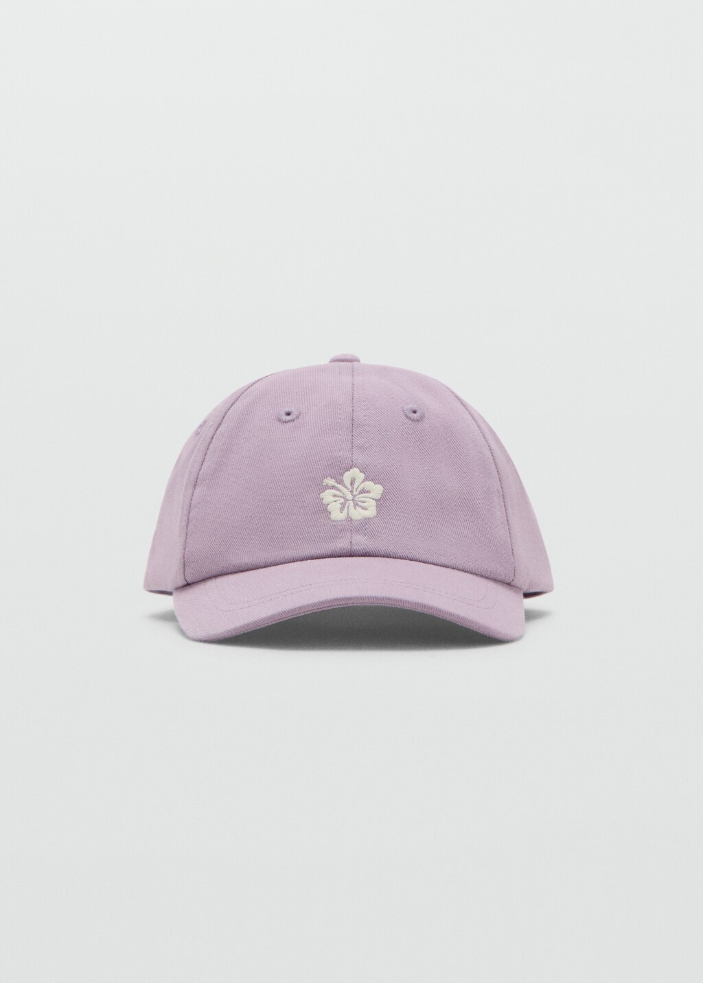 100% cotton fabric. Cap-style. Embroidered flower detail. Adjustable metal closure
