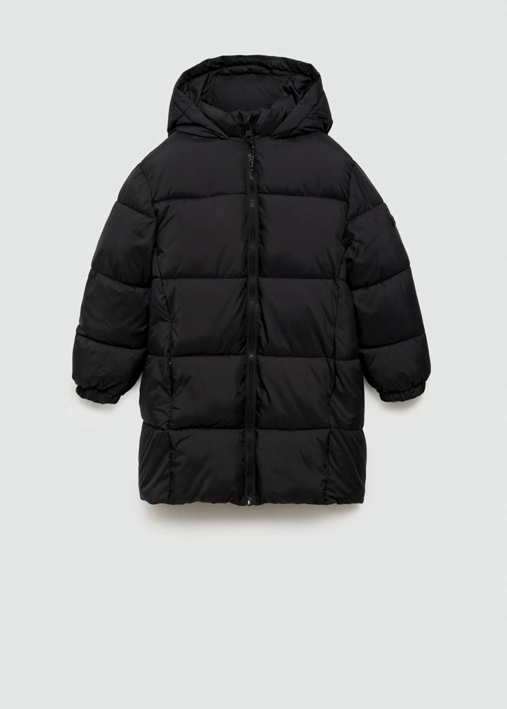 Quilted design. Straight design. Long design. Faux shearling interior. High neck. Long sleeves. Hood. Label for personal data. Zip fastening