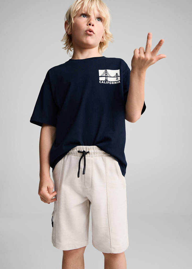 Elastic waist Bermuda shortsCurrent price [kr 199,00 ]kr 199,00Select a colourIce GreySelect your size5-6 years (116cm)Not available. I want it!7-8 years (128cm)Not available. I want it!9-10 years (140cm)Not available. I want it!11-12 years (152cm)Not available. I want it!13-14 years (164cm)Not available. I want it!DimensionsNotify meAdd to WishlistSee lookFree delivery to storeShort design. Cargo design. Elastic band. Side pocket with zip closure. Two zipped pockets. Drawstring closureDetails, composition and careStore availabilityItem qualitiesRecycled cottonAt least 20 %This fibre is obtained from pre- and post-consumer textile waste that is transformed into new fabrics.
