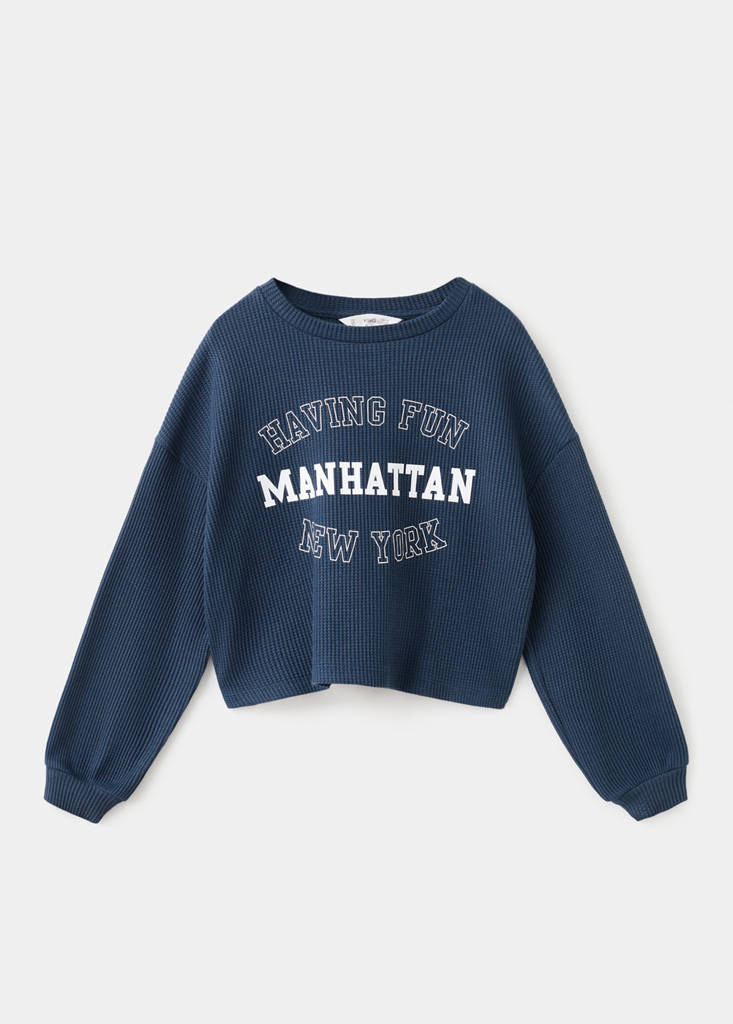 100% cotton fabric. Printed design. Oversized design. Round neck. Long sleeves. Back to school