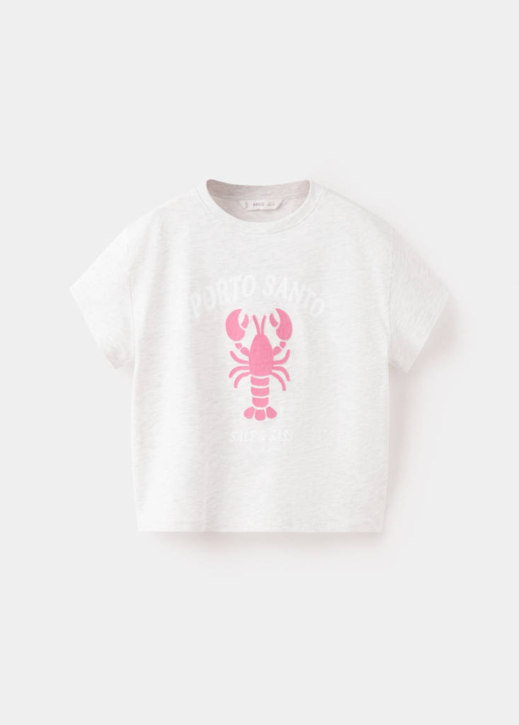 Cotton fabric. Straight design. Round neck. Short sleeves. Text printed on the chest. Embroidered lobster design on the chest