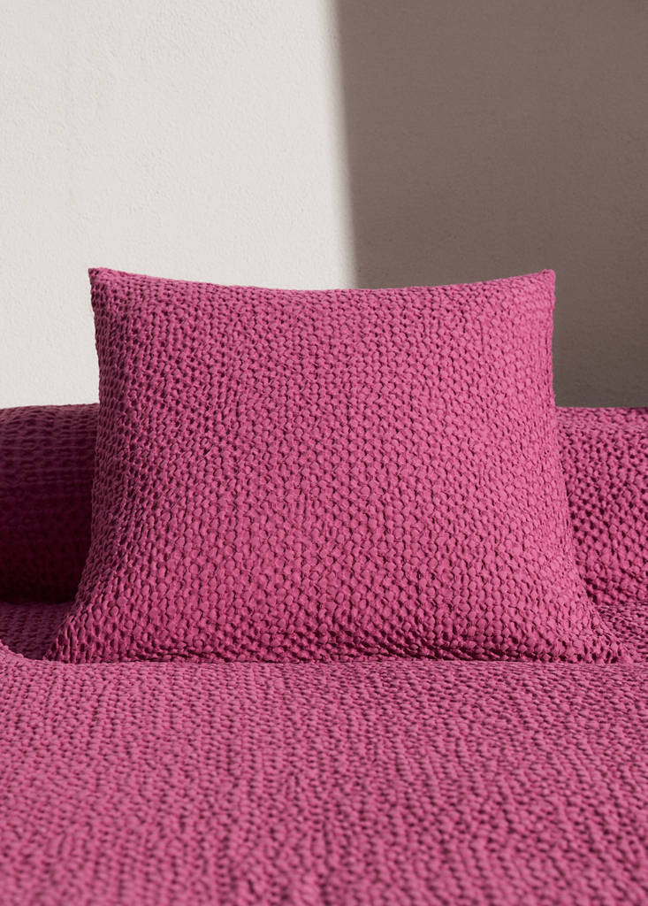 100% cotton fabric. Size: 50x50cm. Coordinates with its matching bedspread. Cushion cover with waffle effect garment dye and simple relief. Soft and comfortable texture to the touch