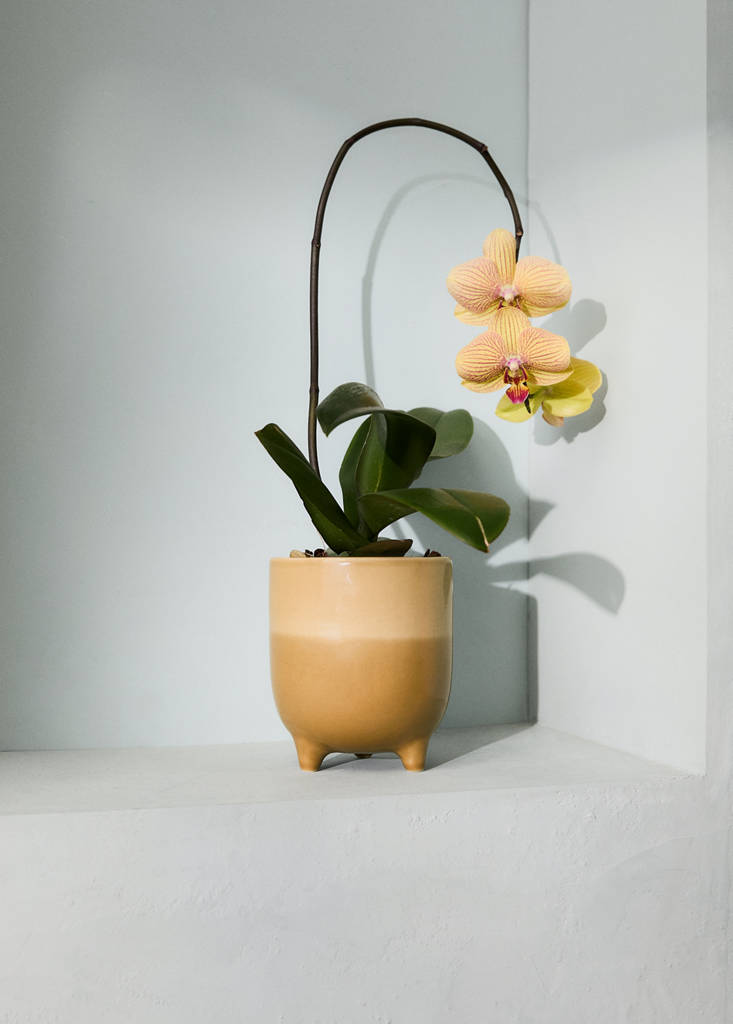 100% stoneware. Height: 14 cm. Diameter: 12 cm. 100% earthenware planter with ceramic, providing a smooth and durable finish. Contrast detail. For plants. Available in two colours. Available in two sizes
