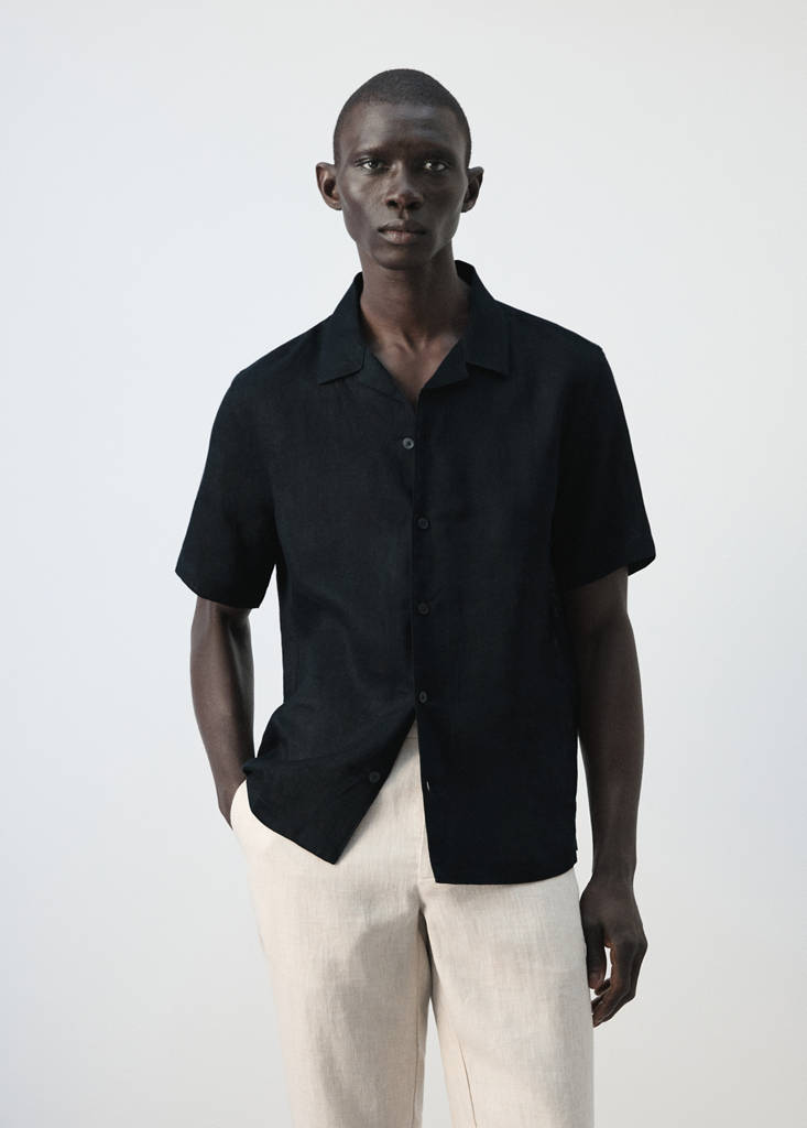 100% linen bowling-collar shirt