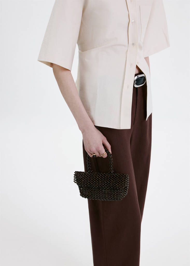 Linen mix. Long design. High waist. Belt loops. Two side pockets. Two patch pockets at the back. Zip, button and concealed hook-and-loop fastener with placket