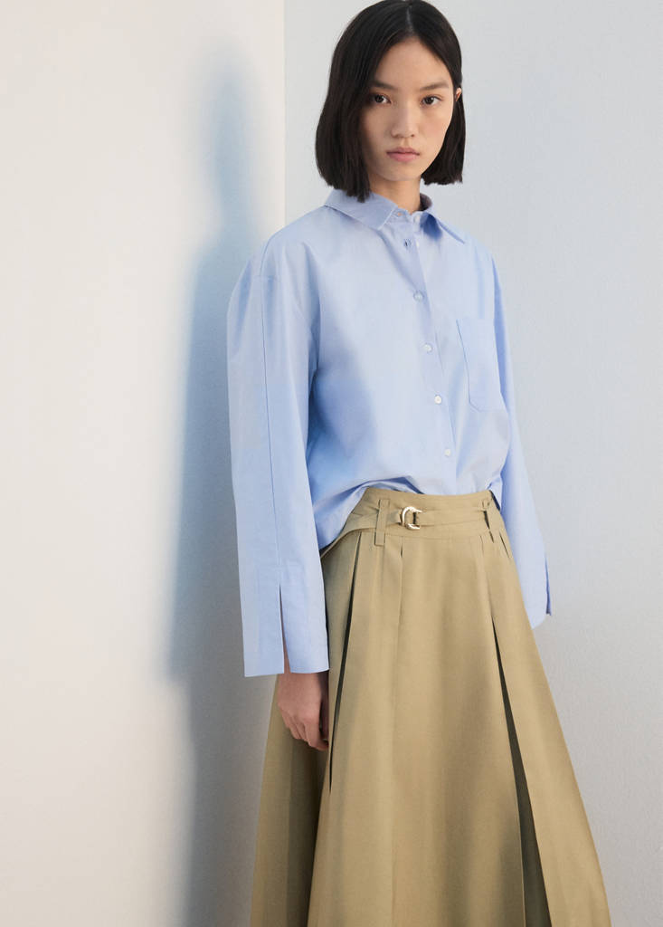 Utsvingt skjørt med plisserte folder og belte