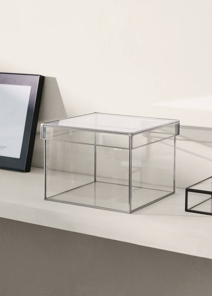 Størrelse: 20x20x15 cm. Kvadratisk design. Med lokk. Transparent design. Sølvfarget metallkant. Dekorer og gi et preg av enkelhet og eleganse til ethvert rom. Skap en varm og koselig atmosfære. Tilgjengelig i to størrelser