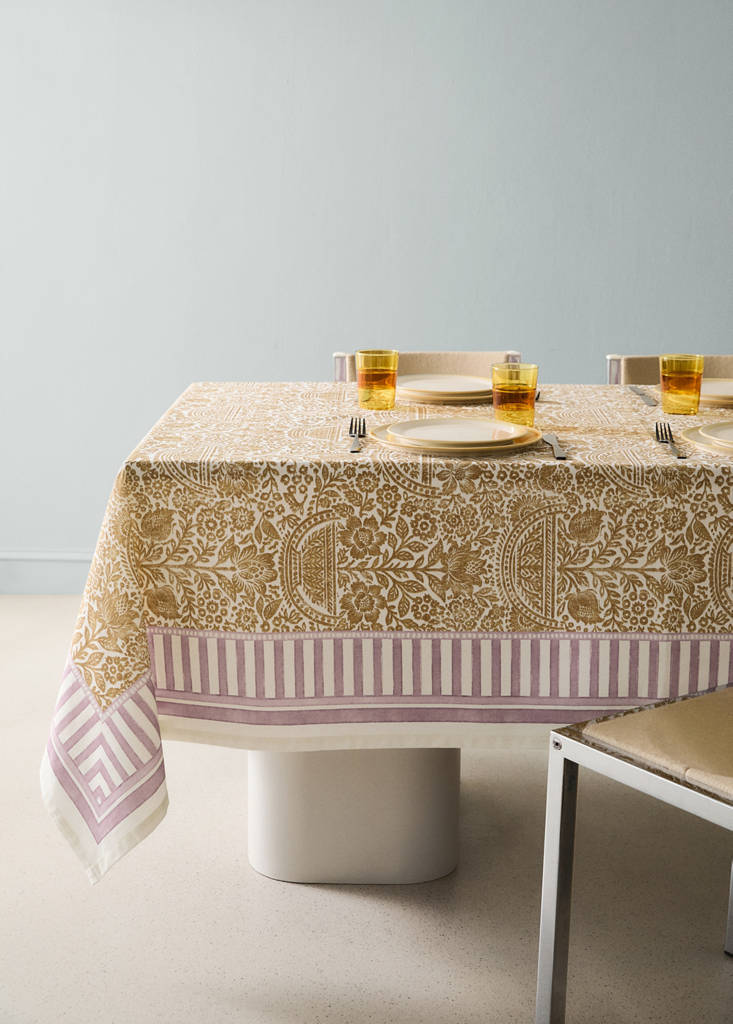 100% Bomull. Størrelse: 150x350 cm. Rund duk. Bomullsduk med et stripete og blomstrete design, perfekt for å gi et naturlig og originalt preg til måltidene dine. Kan kombineres med matchende servietter. Tilgjengelig i flere størrelser. Made in Spain