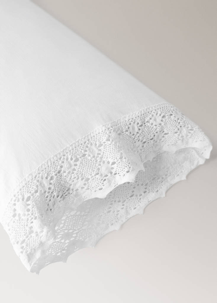 Putetrekk i garnfarget bomull med bred blondekant, 45x110 cm