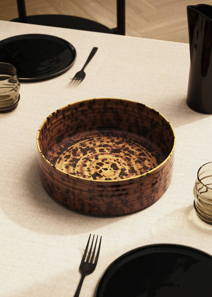 100% steingods. Størrelse: 25,5 x 25,5 x 8 cm. Reaktiv glasur. Prikkemønster. Gir et snev av enkelhet og eleganse til bordet ditt. Kombiner med flere produkter fra kolleksjonen