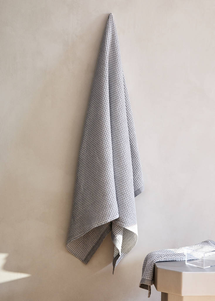 100 % bomullsfrotté. Størrelse: 90x150cm. Vekt: 380gr/m2. Badehåndkle. Vaffelstruktur. Badehåndkle i 100% bomull, som gir høy kvalitet samtidig som det har en myk og luftig følelse. Kompletter med flere produkter fra kolleksjonen. Tilgjengelig i tre farger