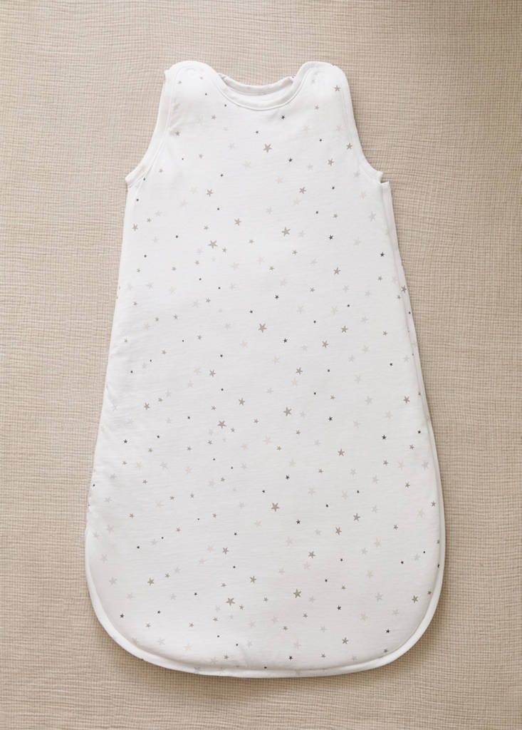 Sovepose. 100% Bomull. Broderte stjerner. Sidelukking med glidelås. Lukking med én knapp. Ideell for en behagelig hvile for de minste i hjemmet. Kombiner med flere produkter fra kolleksjonen