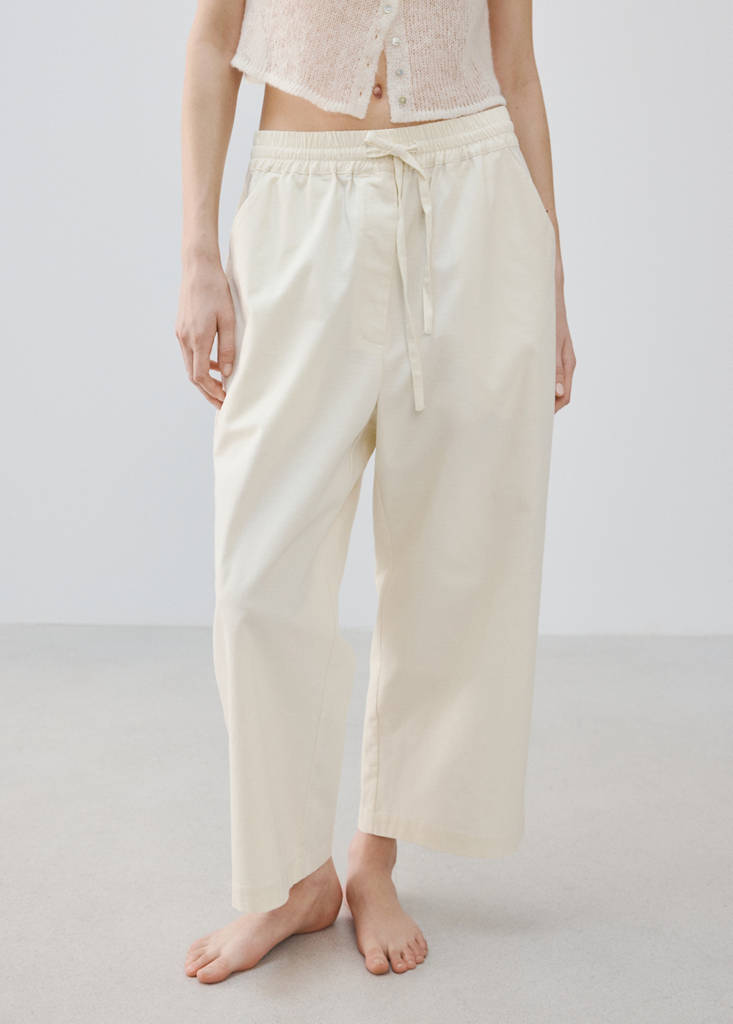 Long cotton pyjama trousersCurrent price [149.95 NZD ]149.95 NZDSelect a colourIvory WhiteThe model is wearing size S and is 5'10" tall.Select your sizeSMLAddAdd to your wishlistSee lookFree delivery to store100% Cotton. Adjustable drawstring. Long design. Straight design. Provides comfort and freedom of movement. Coordinates with more products from the collectionDetails, composition and careStore availability