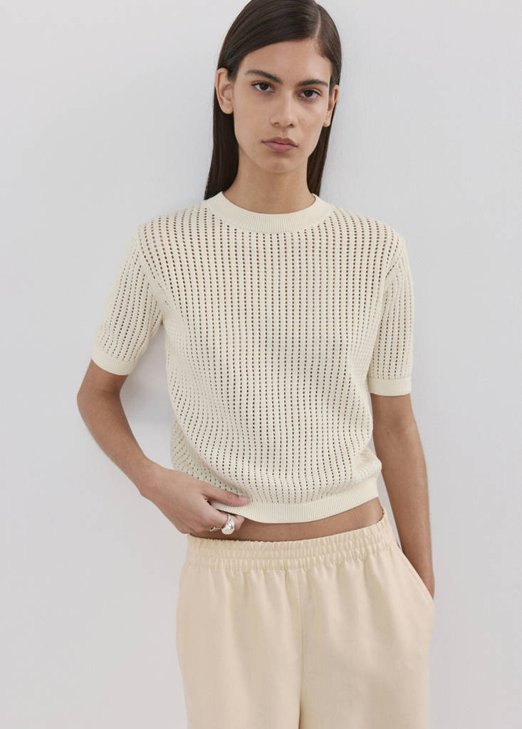 Short-sleeved openwork knitted sweaterCurrent price [79.95 NZD ]79.95 NZDSelect a colourEcruSelect your sizeXXSXSSMLXLNot available. I want it!XXLNot available. I want it!DimensionsAddAdd to your wishlistSee lookFree delivery to storeFine-knit fabric with openwork details. 100% cotton fabric. Straight design. Round neck. Short sleeves. No FasteningDetails, composition and careStore availability