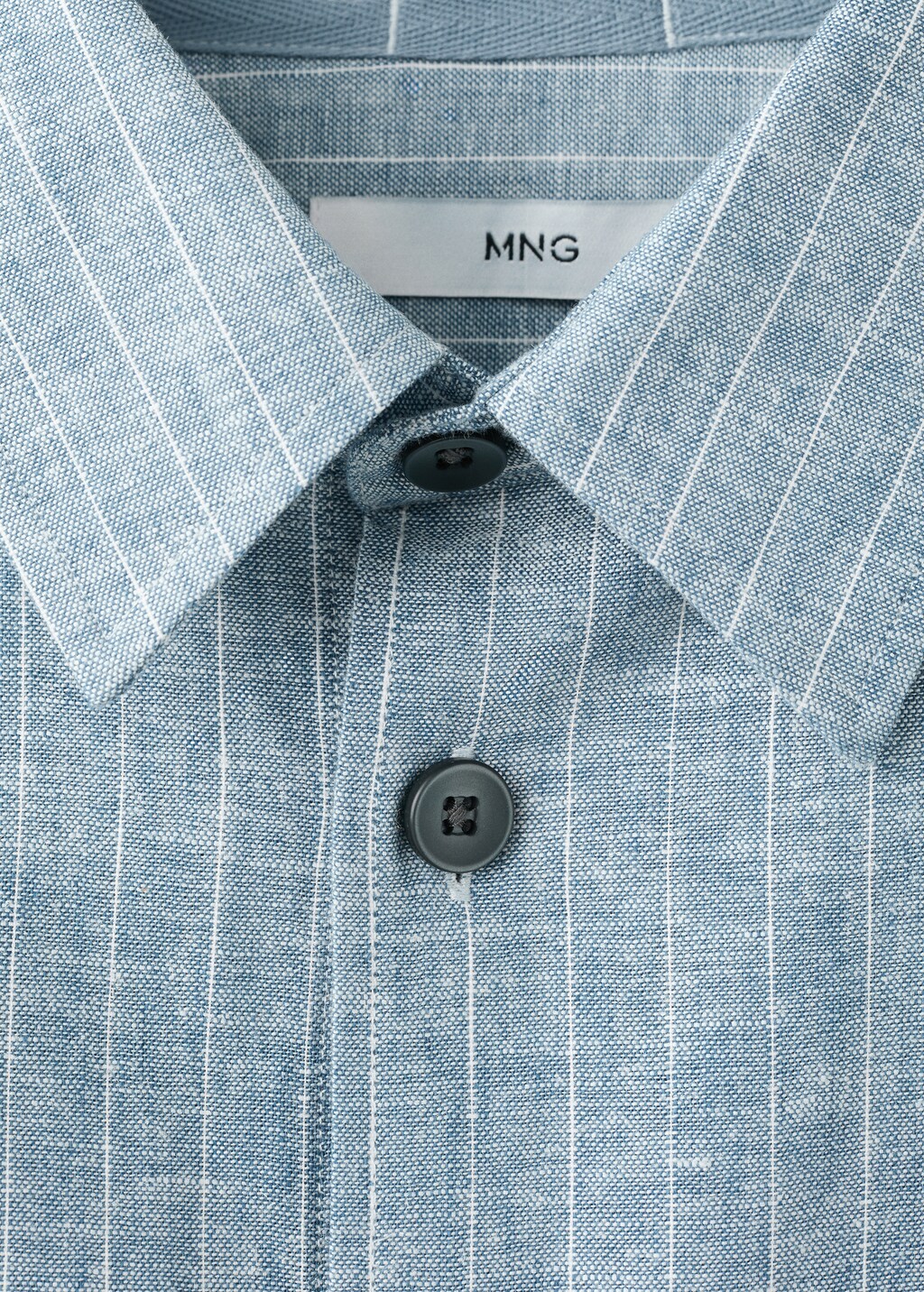 مقاس عادي. طول قياسي. قماش من الكتان والقطن المخلوط. تصميم بخطوط رفيعة. ياقة قميص. أكمام طويلة مع أساور بأزرار. إغلاق بأزرار.