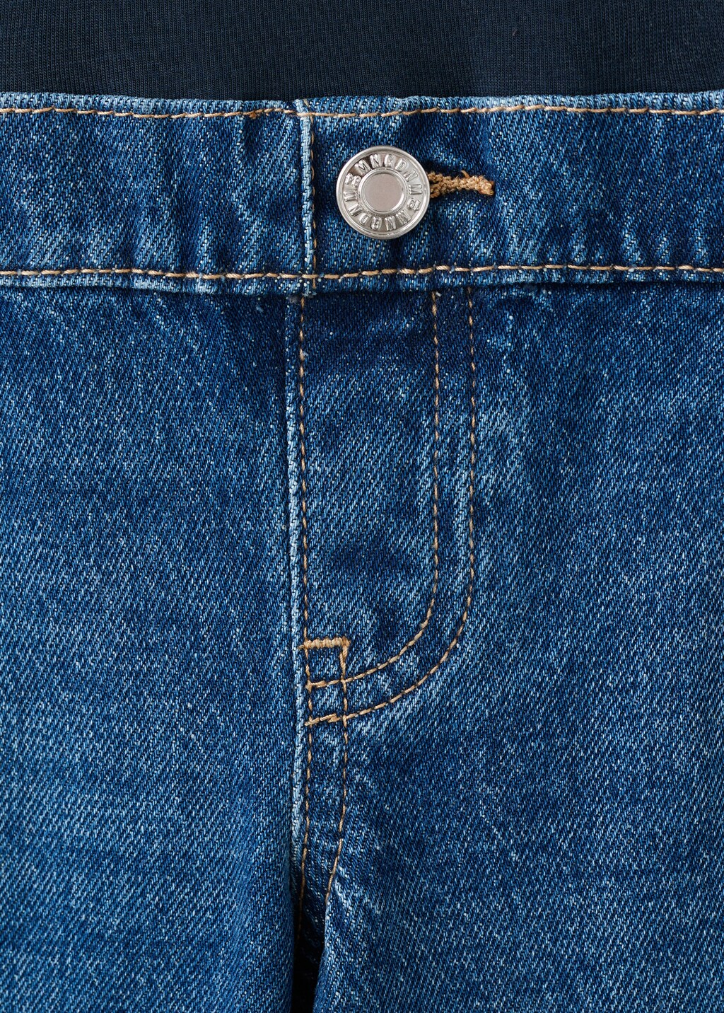 قماش قطني بأسلوب الجينز الكاوبوي. نسيج مطاطي. تصميم طويل. تصميم واسع الساق. بخصر منخفض. خصر برباط مطاطي. رباط خصر مرن وناعم في الأمام لإضافة الراحة والدعم للبطن المتزايد. حلقات حزام. خمسة جيوب. زر للديكور. حاشية بالية. بدون إغلاق. الأمومة. يوفر الراحة وحرية الحركة. نوصي بشراء مقاسك المعتاد. حصري عبر الإنترنت.