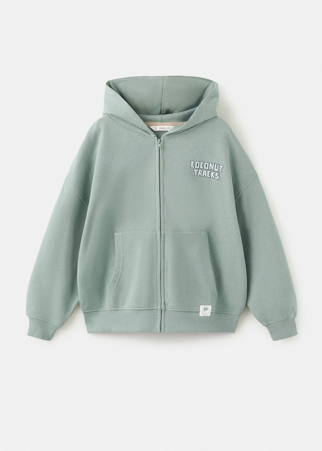 مصنوعة من قماش 100% قطن، تتميز هذه القطعة بتصميم مستقيم مع أكمام طويلة وغطاء رأس. تحتوي على سحاب إغلاق ونص مطبوع على الجانب.