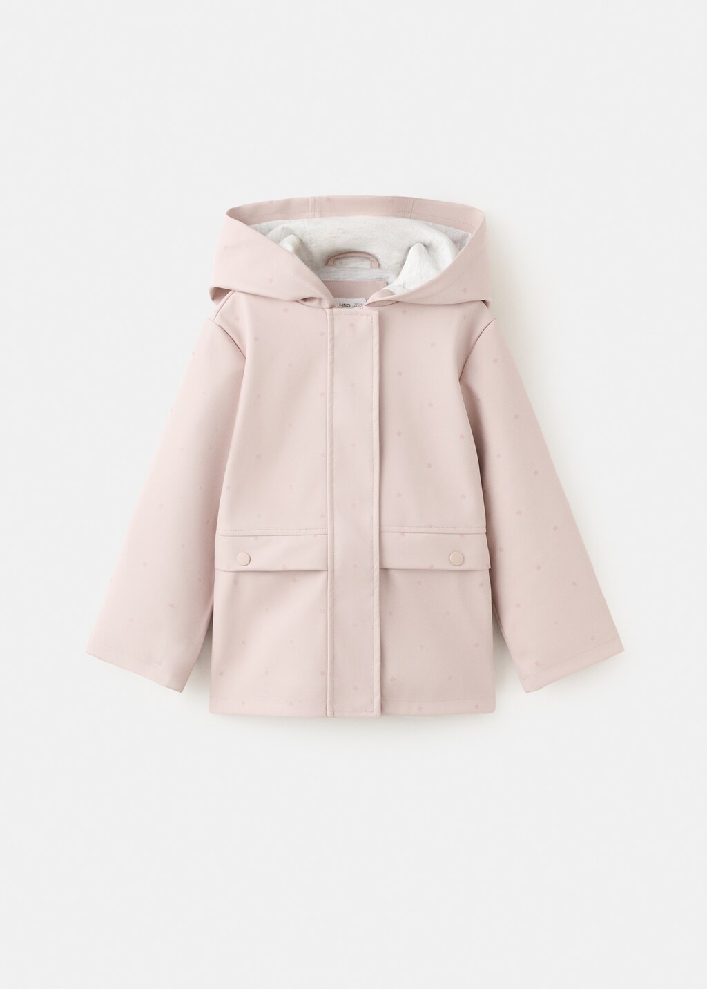 تصميم مستقيم. تصميم نجوم. بغطاء للرأس. أكمام طويلة. جيبان أماميان. إبزيم بسحاب مخفي. إغلاق أمامي بأزرار.