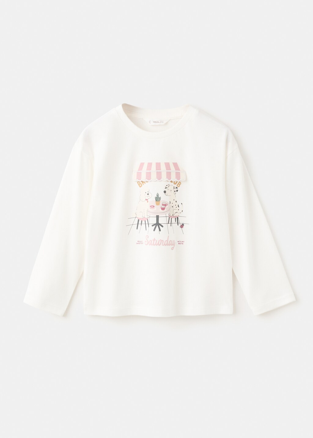 100% cotton fabric. Straight design. Front print design. Puppy design. Embossed pattern. Round neck. Long sleeve.