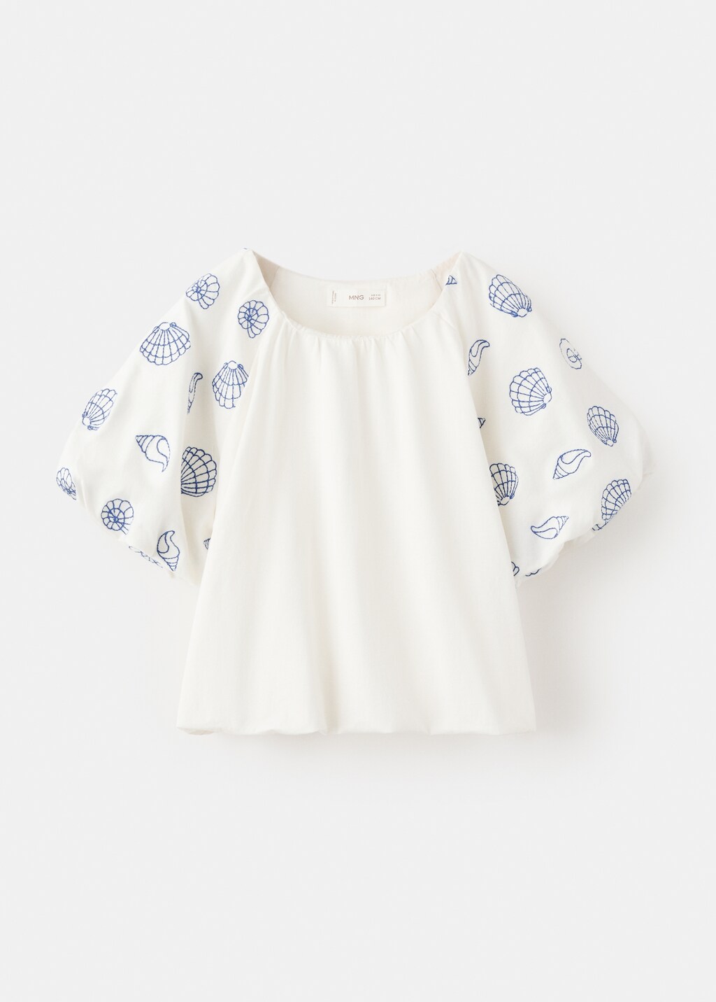 100% cotton fabric. Straight design. Round neck. Short sleeves. Embroidered details on the sleeves.