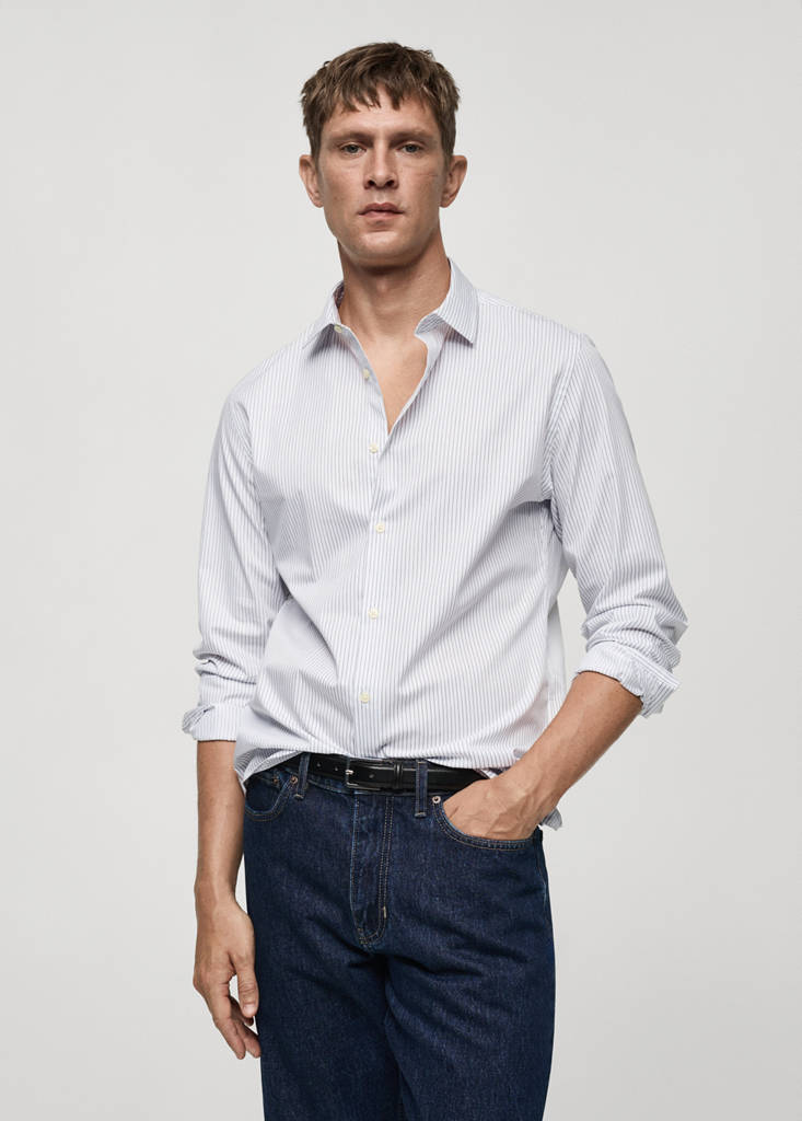 Slim fit striped cotton shirtCurrent price [OMR 27.95 ]OMR 27.95Select a colourWhiteThe model is wearing size M and is 185cm tall.Select your sizeXSNot available. I want it!SNot available. I want it!MNot available. I want it!LNot available. I want it!XLNot available. I want it!DimensionsNotify meAdd to WishlistSee lookFree delivery to storeSlim fit. Cotton fabric. Vertical stripe design. Long sleeves. Classic button-down collar. Buttoned cuffs. Rounded baseDetails, composition and careStore availability