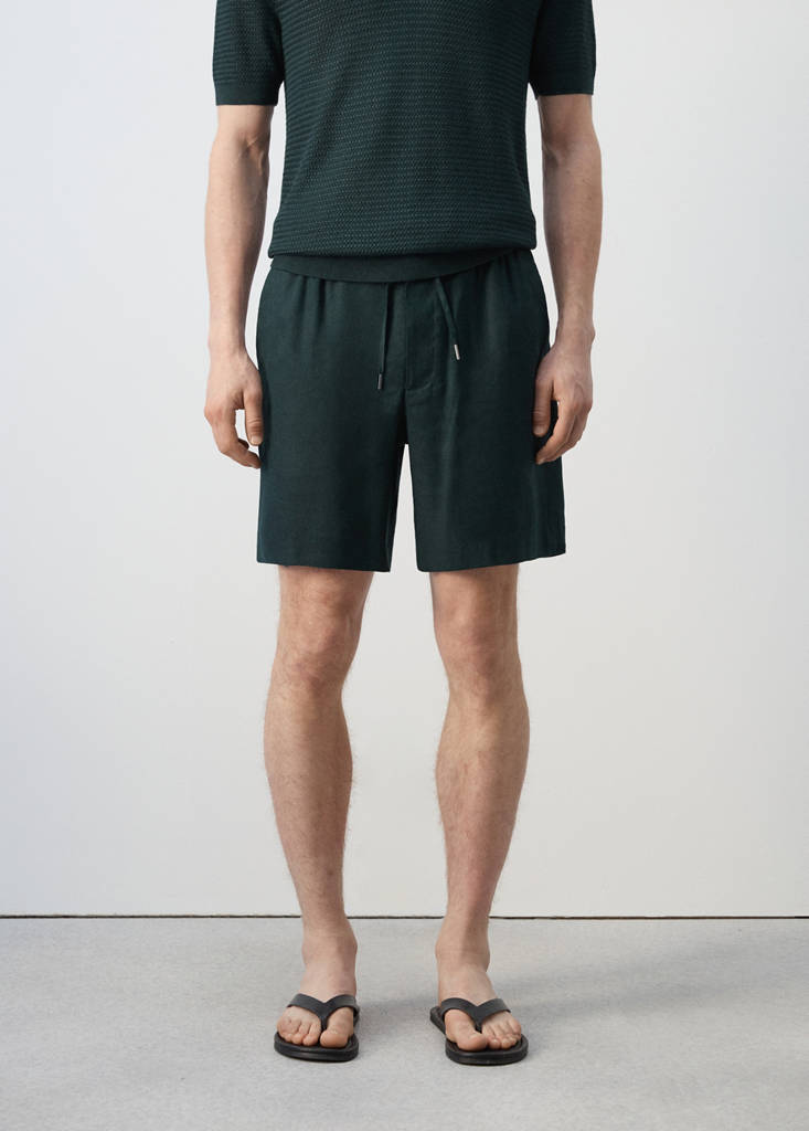Linen mix. Regular waist. Slim fit. Belt loops. Two side pockets. Two welt pockets at the back. Button and zip fastening. Inner lining