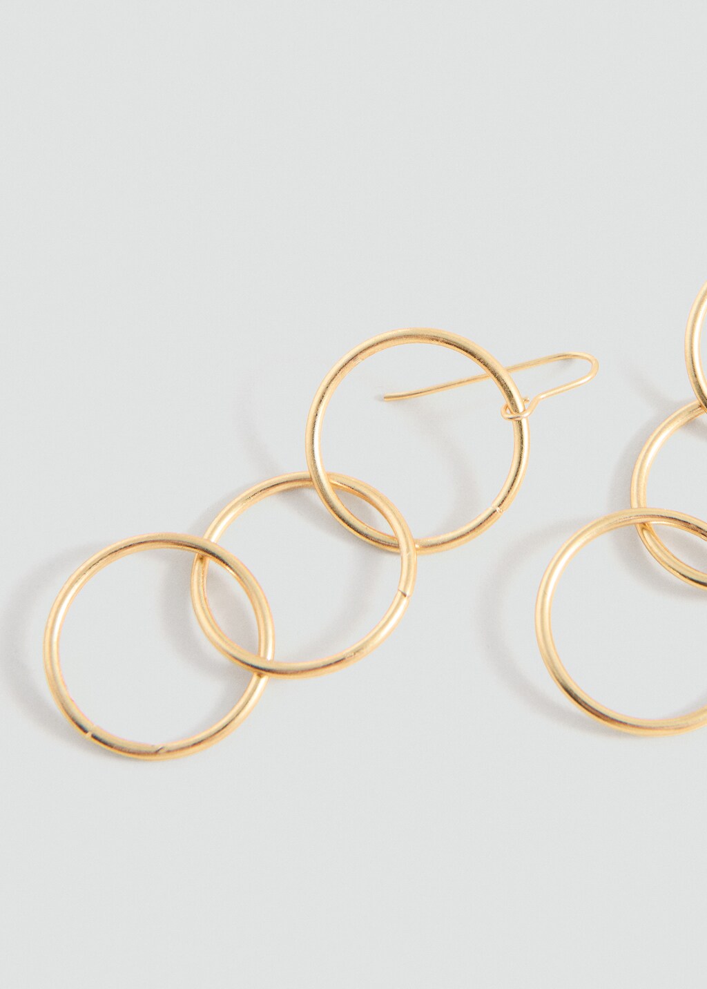Long earrings. Crossover design. Metal Rings. Hook fastening.