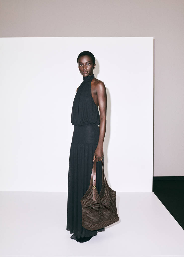 Tote design. Large. Natural fibre fabric. Double handle. Two long shoulder handles. Adjustable strap. Small inner fabric bag. Zip closure
