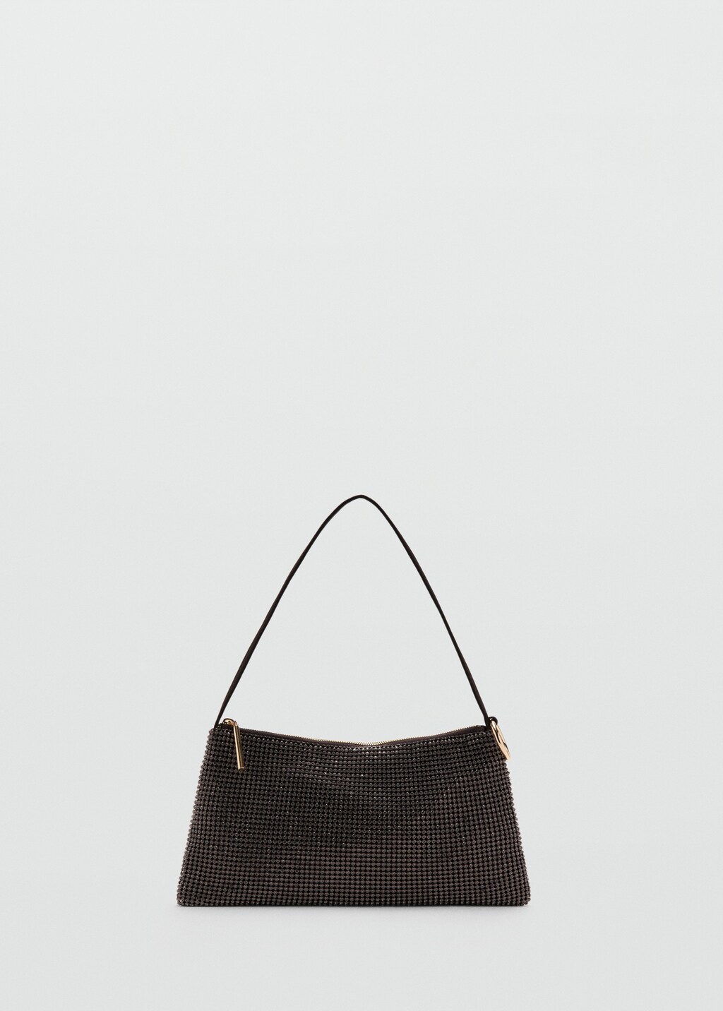 Small size. Strass design. Handle. Decorative ring. Zip closure. Inner lining.