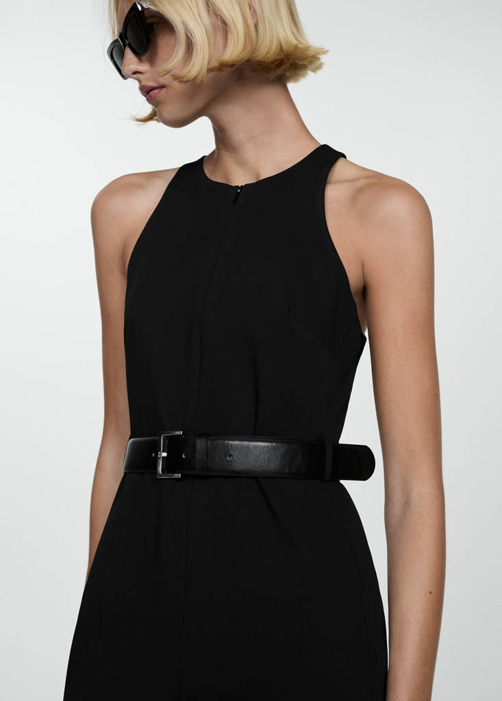 Online ExclusiveJumpsuit with belt and zipCurrent price [OMR 42.95 ]OMR 42.95Select a colourBlackThe model is wearing size S and is 179cm tall.Select your sizeXSNot available. I want it!SNot available. I want it!MNot available. I want it!LNot available. I want it!XLNot available. I want it!DimensionsNotify meAdd to WishlistSee lookFree delivery to storeFluid fabric. Long design. Straight design. Round neck. Sleeveless. Belt loops. Removable belt. Invisible front zip fasteningDetails, composition and careStore availability