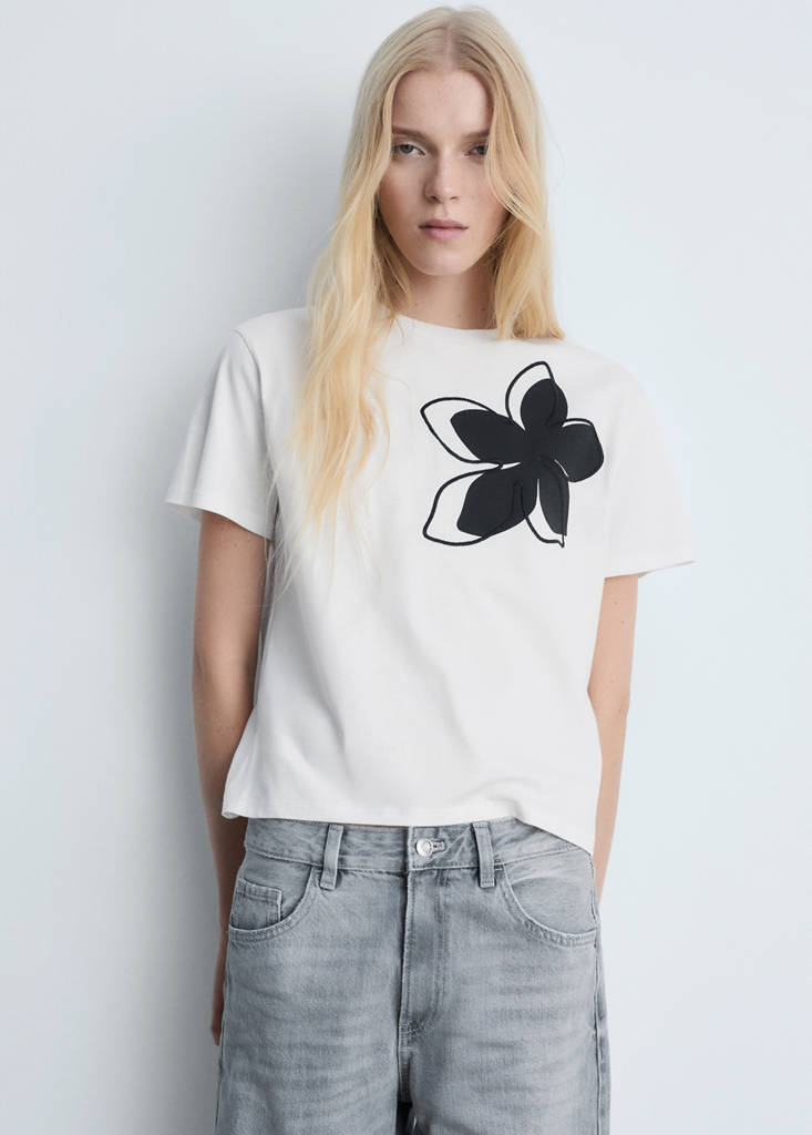 Diseño recto. Estampado floral. Cuello redondo. Manga corta. Tejido 100% algodón