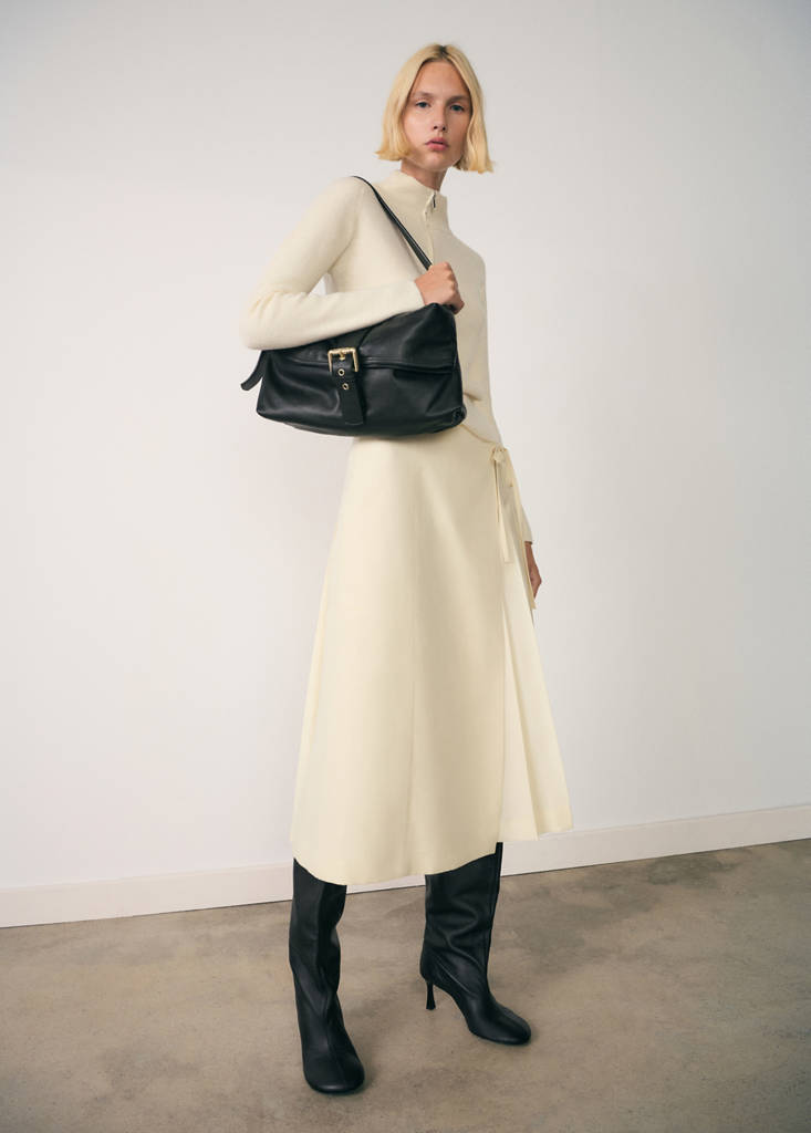 Tejido de punto en canalé. Tejido de punto fino. Diseño entallado. Cuello perkins con cierre de cremallera. Manga larga