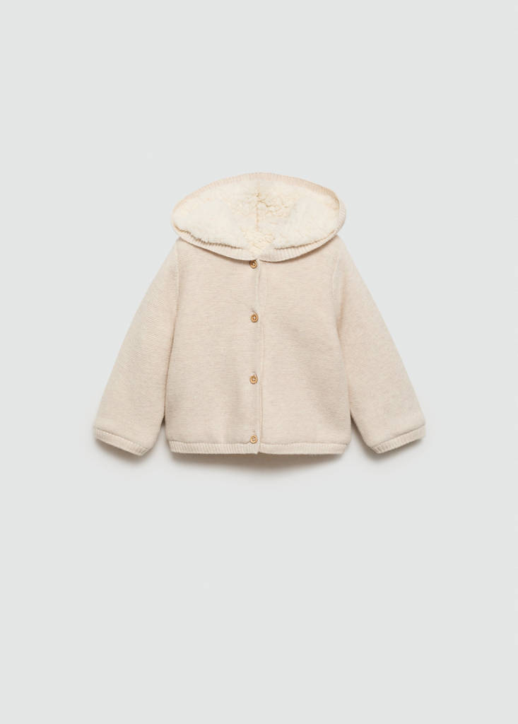 Cárdigan punto interior borreguitoPrecio actual [US$ 39.99 ]US$ 39.99Selecciona un colorArenaSelecciona tu talla1-3 meses (62cm)No disponible ¡Lo quiero!3-6 meses (68cm)No disponible ¡Lo quiero!6-9 meses (74cm)No disponible ¡Lo quiero!9-12 meses (80cm)No disponible ¡Lo quiero!12-18 meses (86cm)No disponible ¡Lo quiero!18-24 meses (92cm)No disponible ¡Lo quiero!MedidasAvísameAñadir a FavoritosVer lookEnvío gratis a tiendaTejido con algodón. Diseño recto. Interior de borreguito. Manga larga. Capucha con detalle de orejitas. Cierre delantero con botonesDetalles, composición y cuidadosDisponibilidad en tiendaCualidades del artículoAlgodón recicladoAl menos 20%Esta fibra se obtiene a partir de restos textiles pre y post consumo que se transforman en nuevos tejidos.