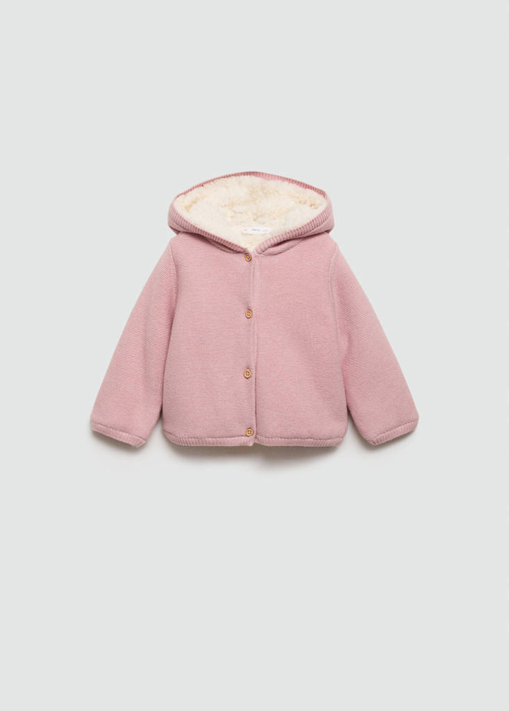 Cárdigan punto interior borreguitoPrecio actual [US$ 39.99 ]US$ 39.99Selecciona un colorRosaSelecciona tu talla1-3 meses (62cm)No disponible ¡Lo quiero!3-6 meses (68cm)No disponible ¡Lo quiero!6-9 meses (74cm)No disponible ¡Lo quiero!9-12 meses (80cm)No disponible ¡Lo quiero!12-18 meses (86cm)No disponible ¡Lo quiero!18-24 meses (92cm)No disponible ¡Lo quiero!MedidasAvísameAñadir a FavoritosVer lookEnvío gratis a tiendaTejido con algodón. Diseño recto. Interior de borreguito. Manga larga. Capucha con detalle de orejitas. Cierre delantero con botonesDetalles, composición y cuidadosDisponibilidad en tiendaCualidades del artículoAlgodón recicladoAl menos 20%Esta fibra se obtiene a partir de restos textiles pre y post consumo que se transforman en nuevos tejidos.
