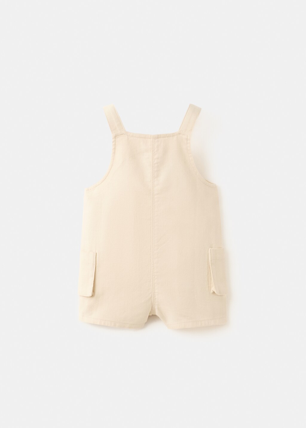 Tejido mezcla de algodón y lino. Diseño recto. Diseño corto. Cuello recto. Tirantes con cierre de botón. Bolsillo de parche en el pecho.