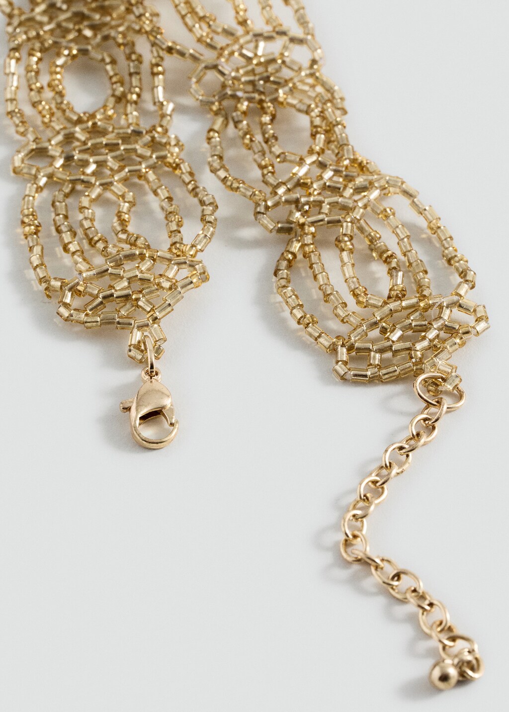 Estilo choker. Efecto malla. Panel abalorios. Cierre de gancho.