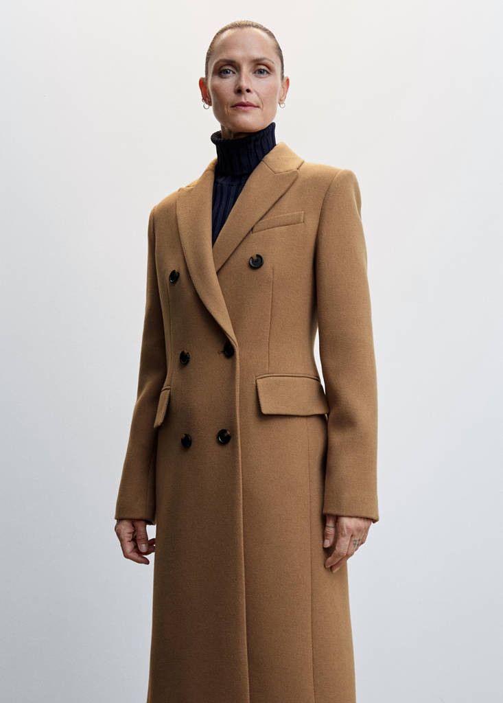 Tejido mezcla de lana. Diseño doble botonadura. Diseño largo. Diseño entallado. Cuello pico con solapa. Solapas con muesca. Manga larga con puños abotonados. Dos bolsillos de solapa en la parte frontal. Abertura posterior en el bajo. Forro interior. Cierre de botones en la parte delantera. El color azul marino es exclusivo online. Disponible Plus