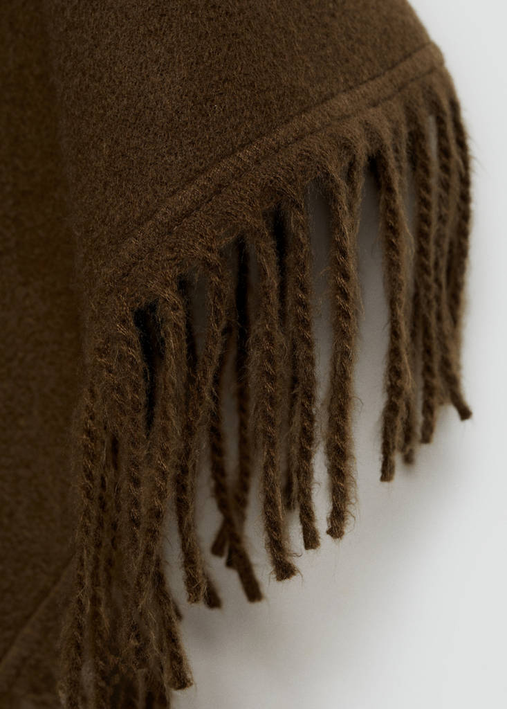 Tejido de punto. Diseño recto. Manga tres cuartos. Terminación de flecos. Bajo asimétrico. Sin cierre