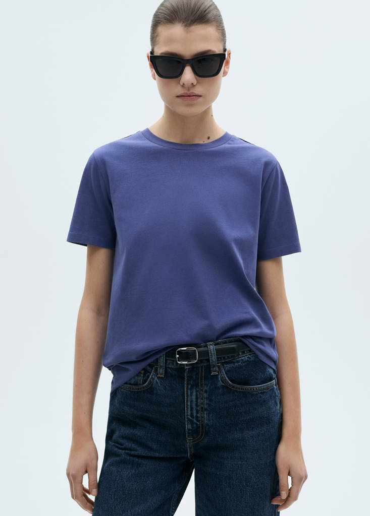 Tejido de algodón. 80% algodón orgánico y 20% algodón reciclado. Tejido de gramaje ligero (160gm/m2). Regular fit. Diseño recto. Cuello redondo. Manga corta. Sin cierre
