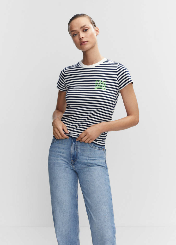 Tejido 100% algodón. Diseño recto. Diseño de rayas. Licencias. Cuello redondo. Manga corta. Sin cierre. Detalle bordado